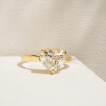 Un anillo clásico para una novia romántica que destaca por su piedra en forma de corazón, que lo convierte en una joya única por su tamaño.